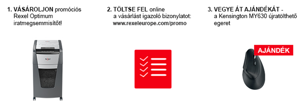 VÁSÁROLJON promóciós Rexel Optimum automata iratmegsemmisítőt és most egy Kensington MY360 vertikális egeret kaphat mellé ajándékba!